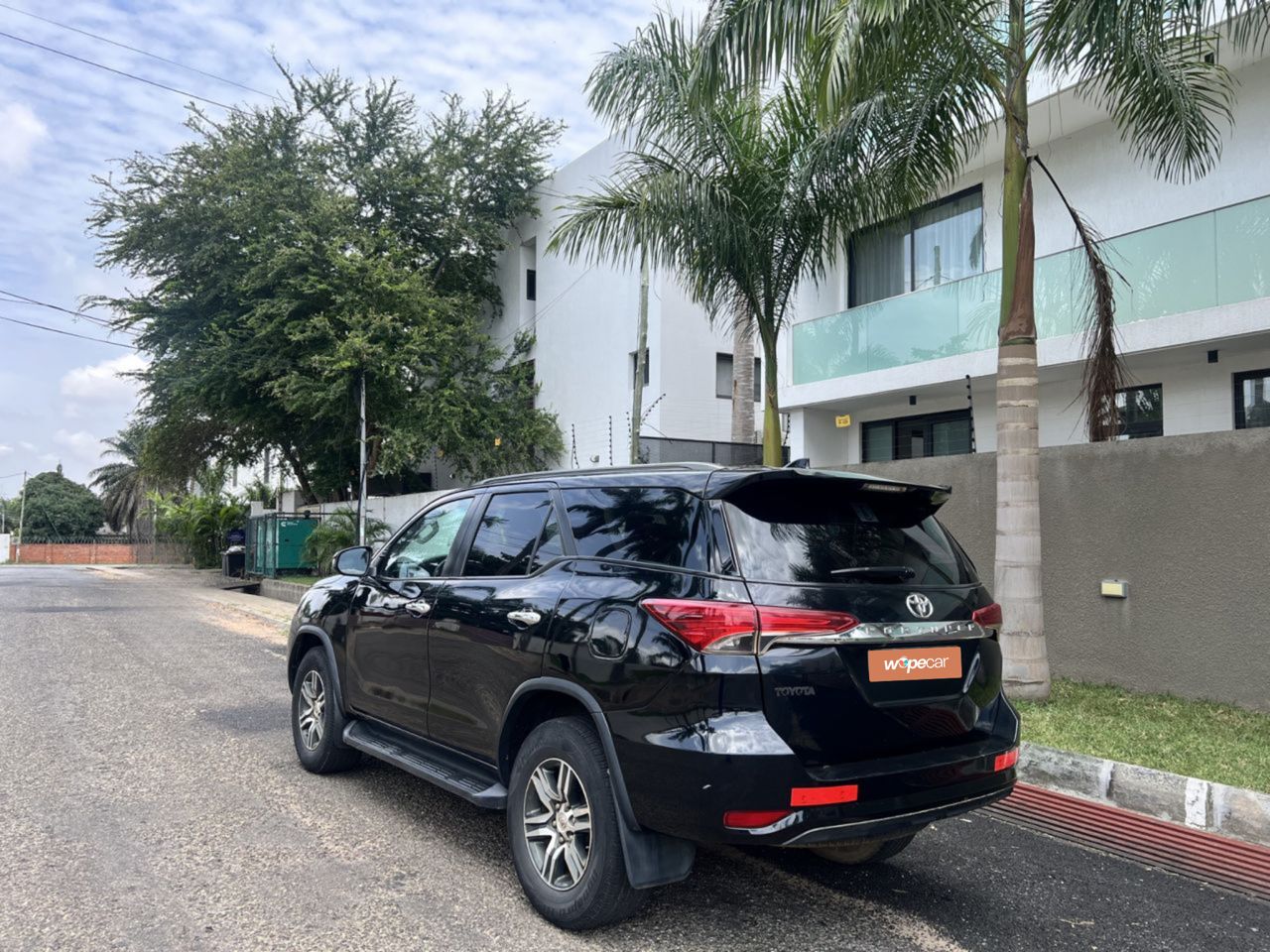 The Toyota Fortuner is a rugged yet stylish SUV powered by a 2.8L turbo‑diesel engine with a 6‑speed automatic transmission, offering strong performance and advanced 4x4 capability, complemented by bold exterior styling with LED headlights and a muscular stance.